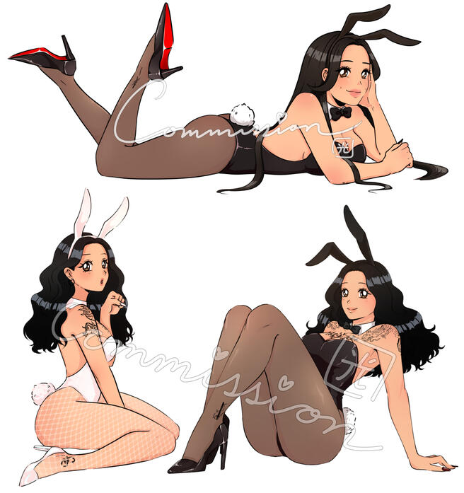 - Bunny outfits can be any color, although I recommend: Black, White, Pink, or Red.